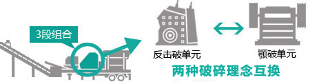 產品簡介:對于中小產量需求、經常移動作業環境、獨立完成客戶生產石料的需求,三組合移動站是不錯的選擇。根據客戶出料粒度和粒形的要求,兩種配備反擊破和兩種配備顎破的的三組合可供選擇,滿足不同需求的客戶群體。三組合顎破機型既可獨立完成客戶生產石料的需求,也可作聯機作業的粗破使用。